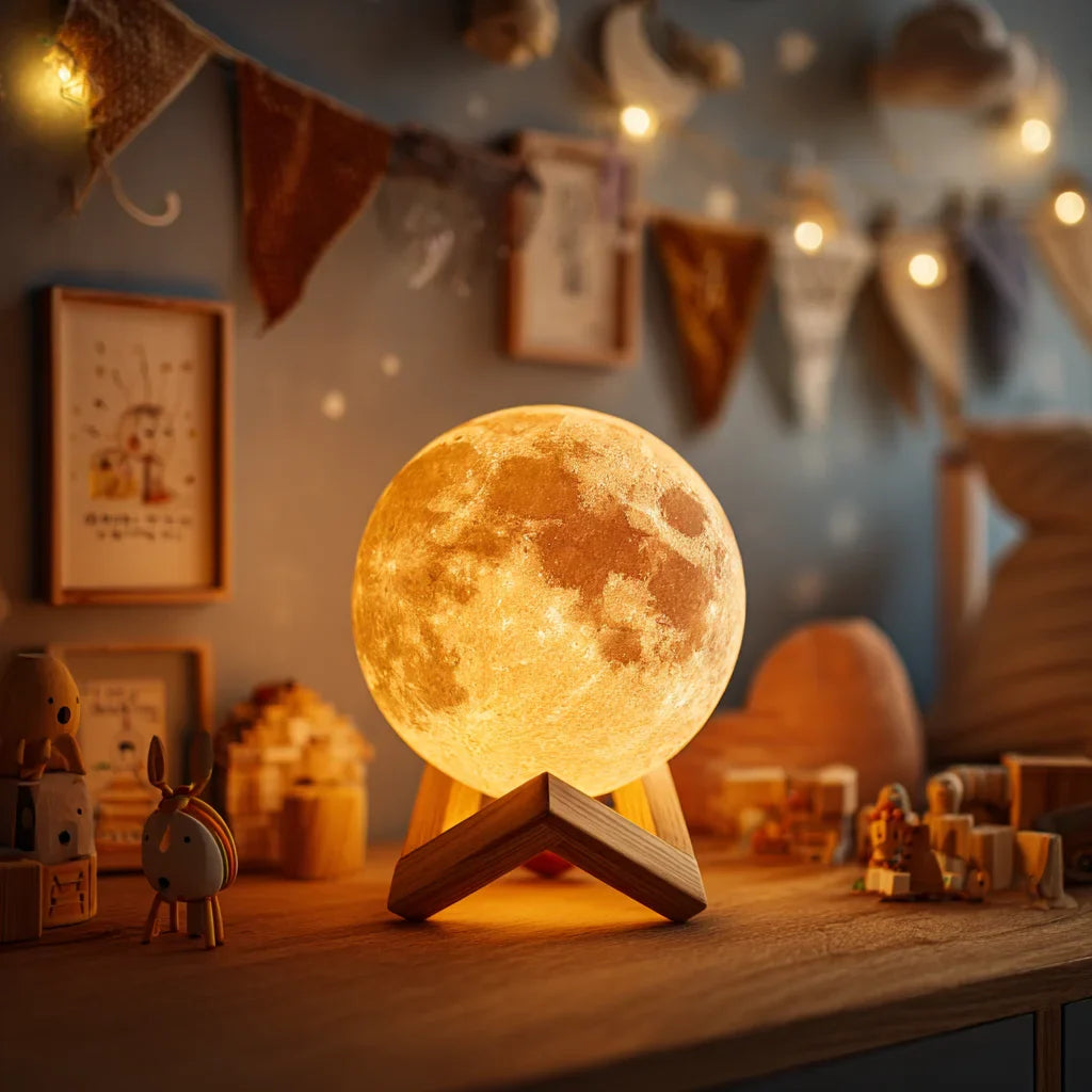🌕 Diese realistische Mondlampe schafft mit ihrem warmen, sanften Leuchten eine magische Atmosphäre und ist das perfekte Highlight für Kinderzimmer oder gemütliche Ecken.