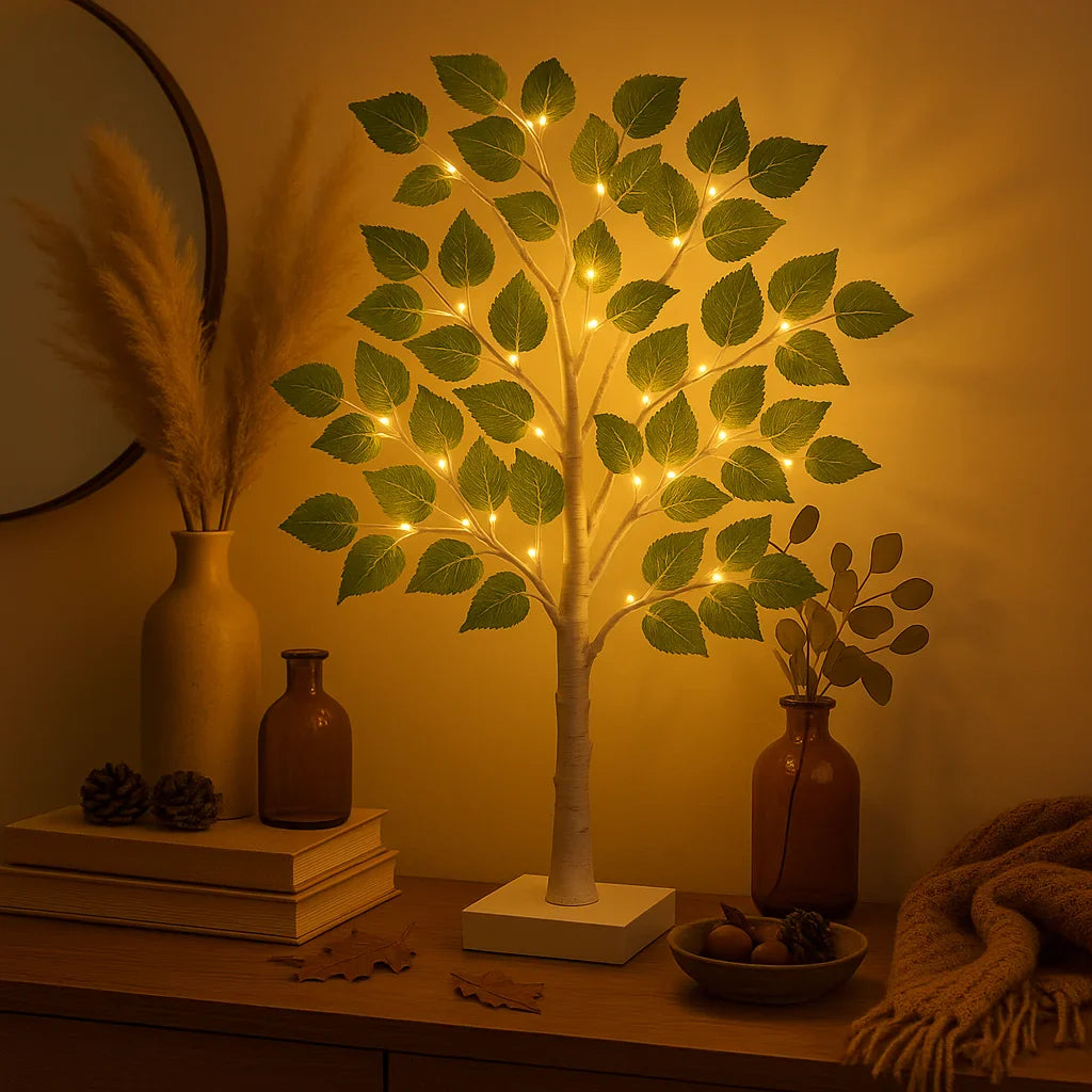 🌿 Dieser beleuchtete Dekobaum bringt mit seinen warmen Lichtern und natürlichen Blättern eine beruhigende, harmonische Atmosphäre in jeden Wohnraum.